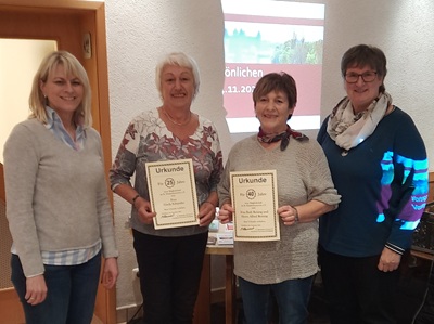 1. Vorsitzende Isabel Rameil, Frau Gisela Schneider, Frau Ruth Reising, 2. Vorsitzende Edith Stenger bei den Ehrungen